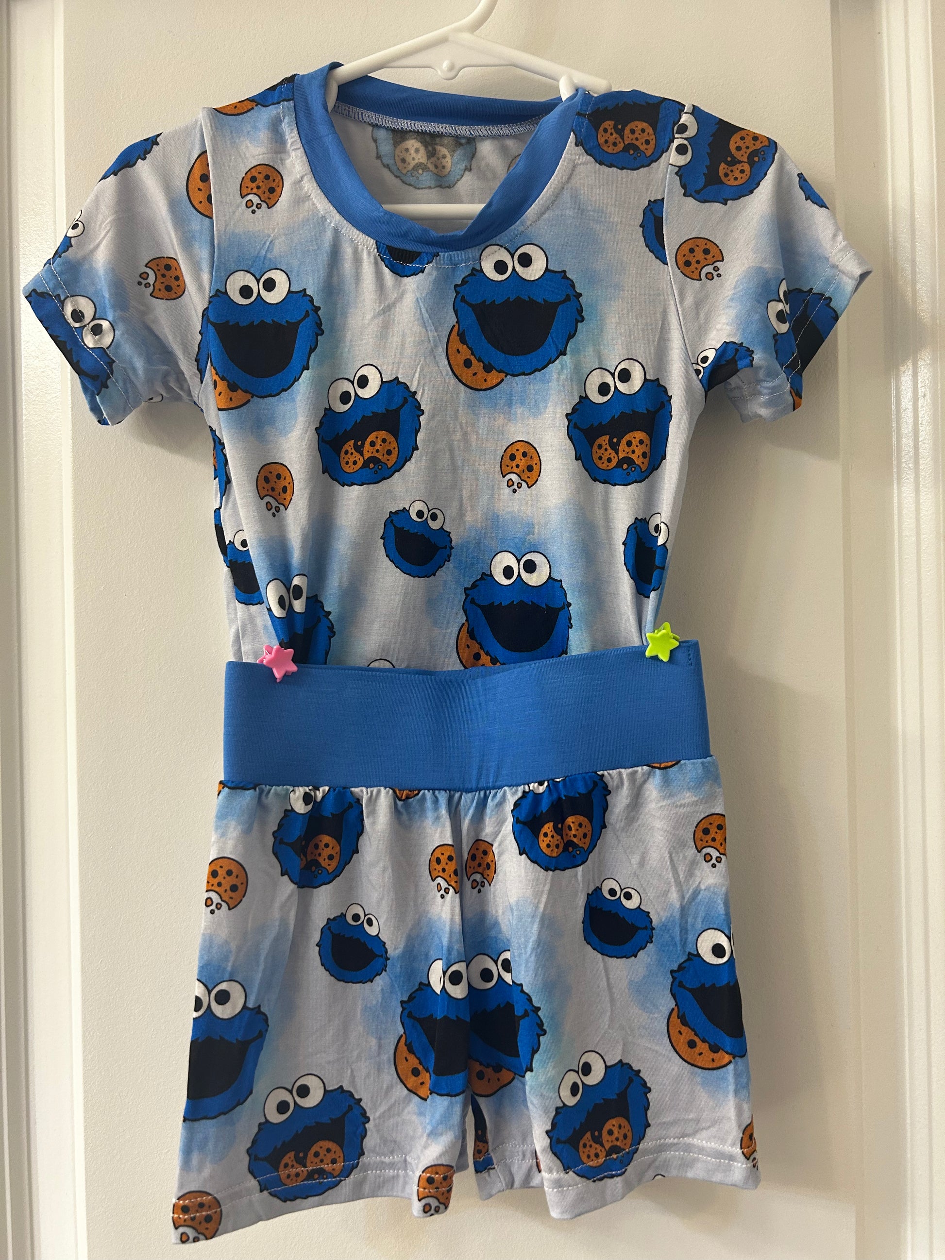 Adorable Cookie Monster bamboo set with a soft T-shirt and matching short shorts—cool, comfy, and perfect for playtime.